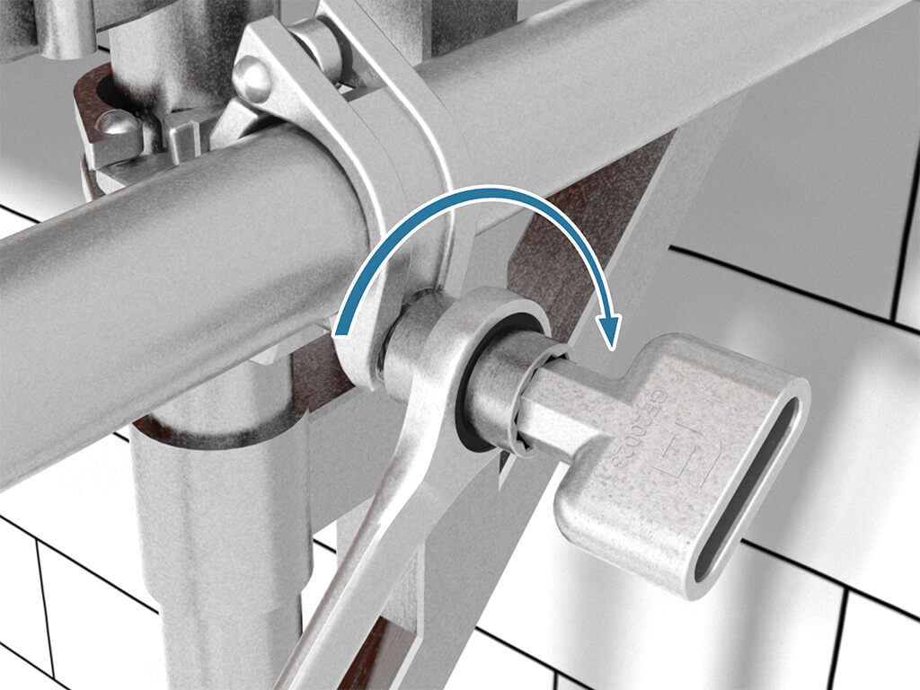 Stecken Sie die Ringösennuss in die passende Aufnahme der Gerüstbauratsche.