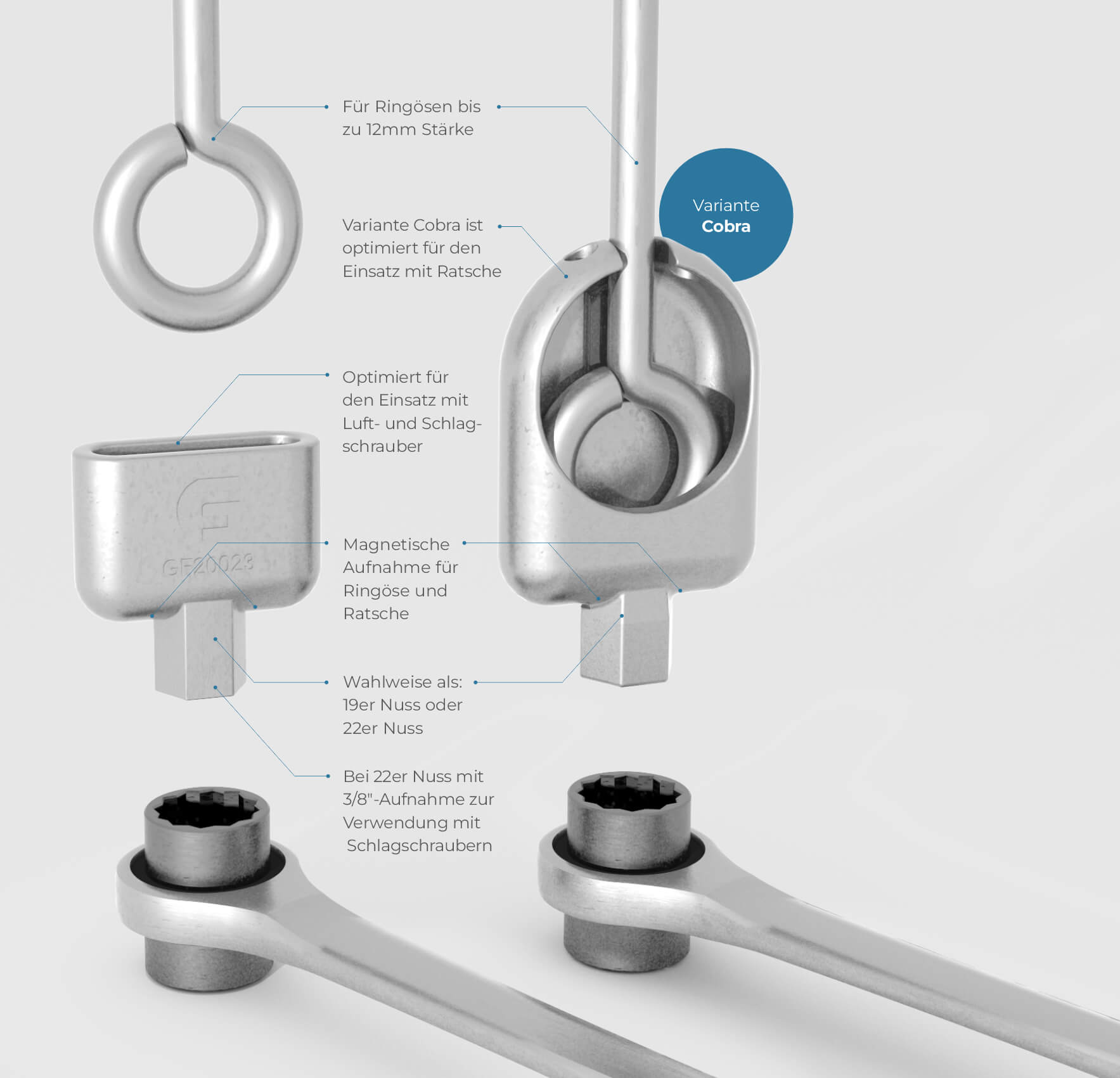 können die GFM Ringösennuss einfach auf Ihrer Ratsche belassen und die freie Seite